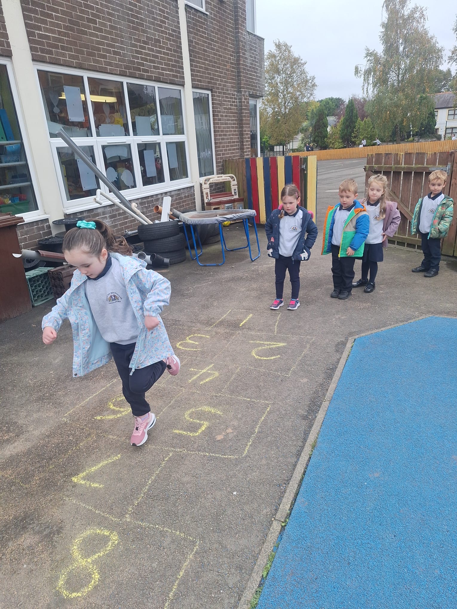To celebrate Maths Week Ireland, we took our Numeracy lesson outdoors! We sorted different shapes, practised our counting by playing hopscotch and ordered numbers from 1-20! We had a great time learning outside.